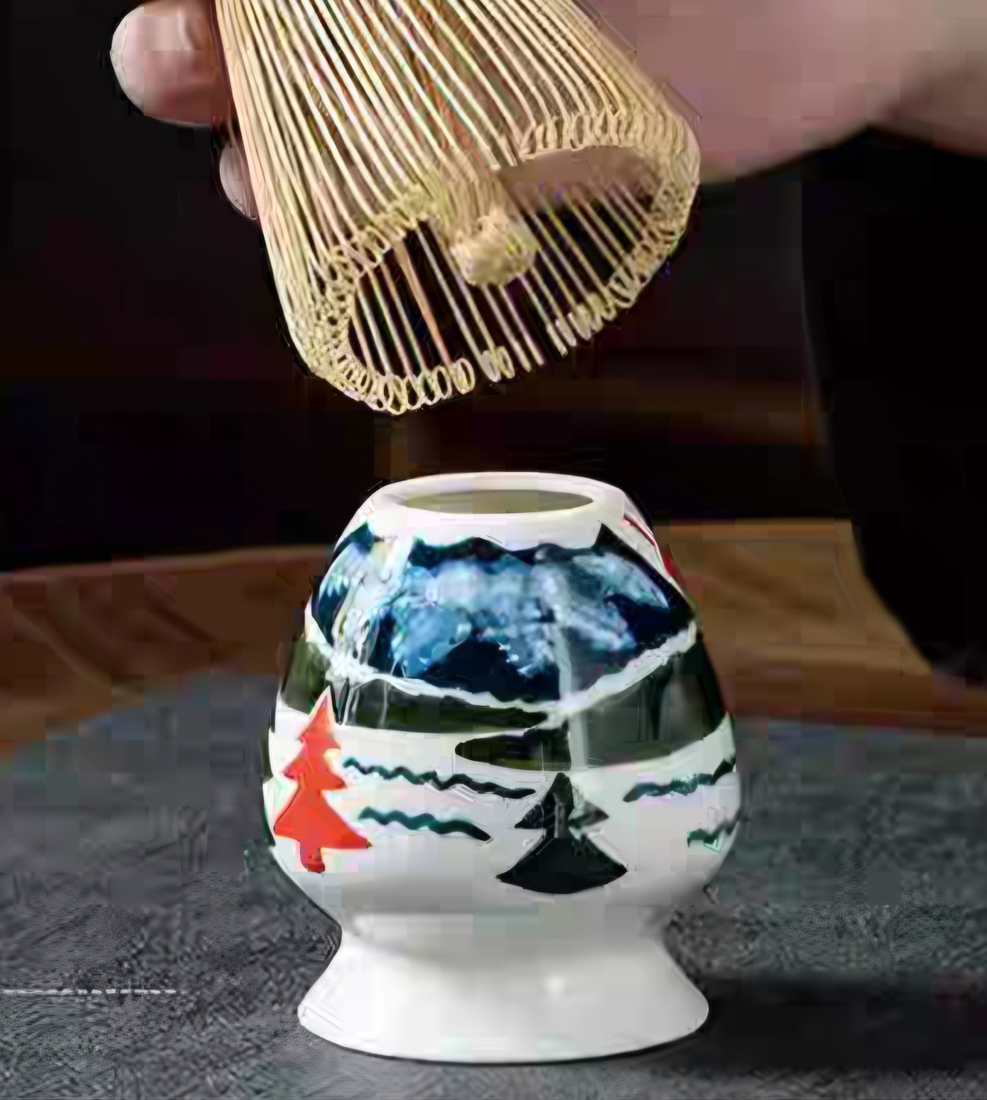 A ceramic chasen tea whisk stand, to keep your bamboo whisk in top condition. Simply place your chasen in the stand after using, to let it dry and keep its form.
