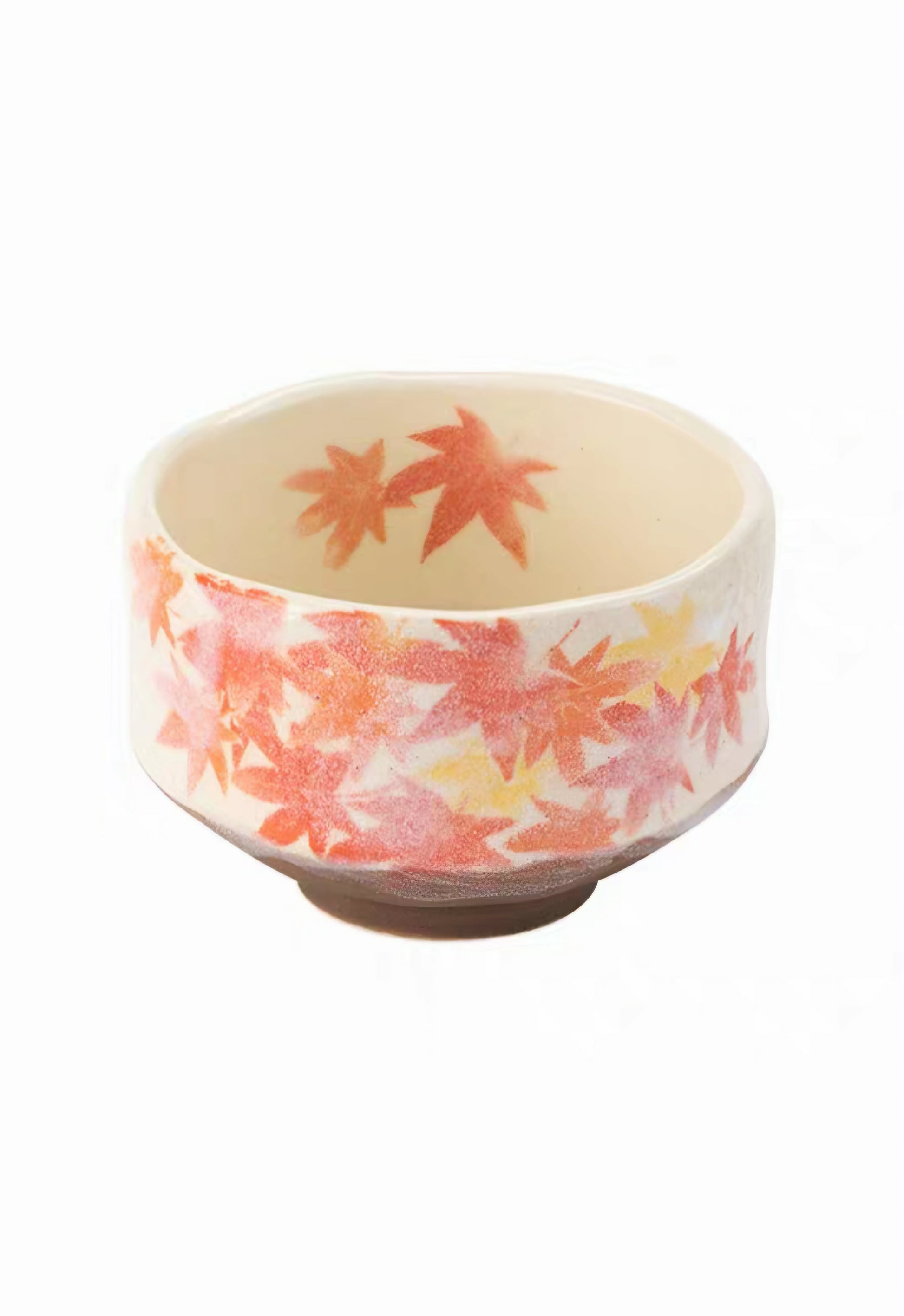 Celebrate the harmony of nature and craftsmanship with the Hatsuichi Japan Red Maple Leave Momiji Chawan Matcha Bowl Mino ware.
